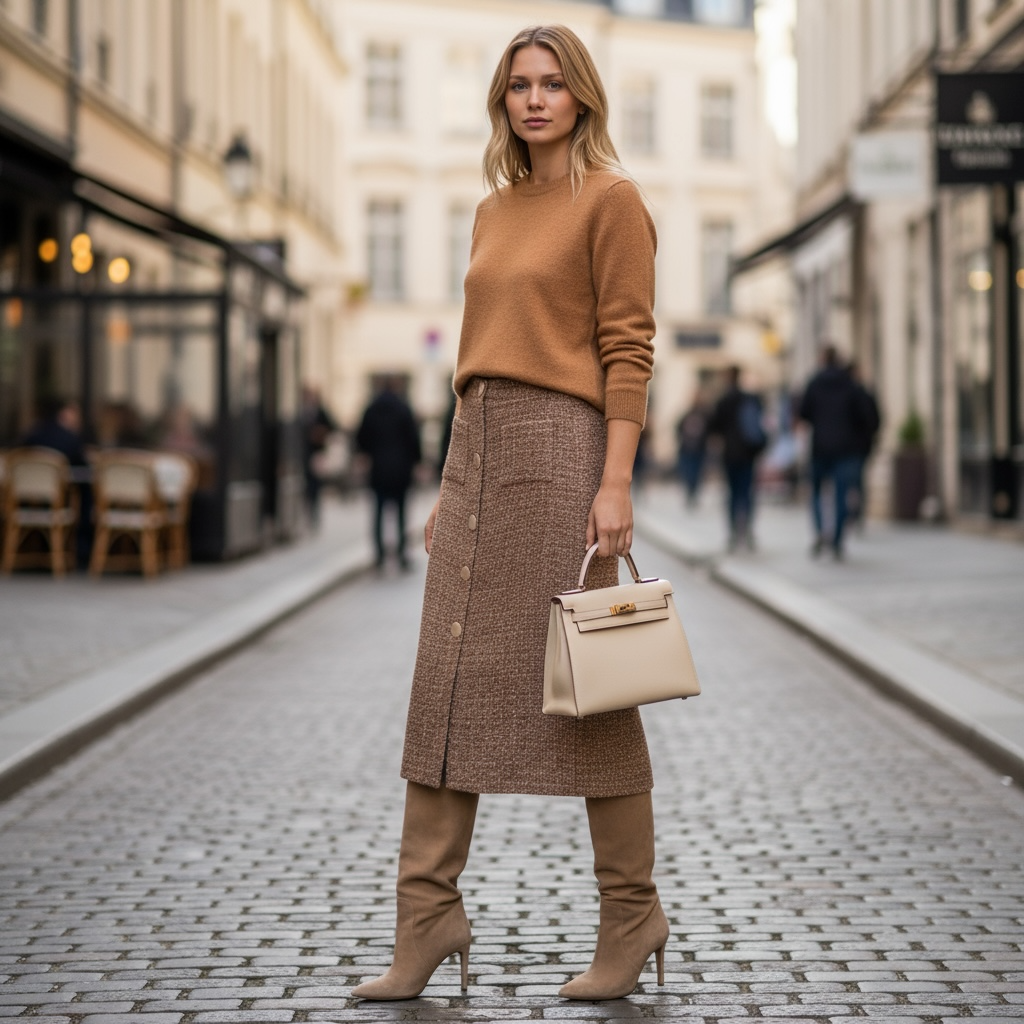 La gonna Giorgina in tweed con fili color oro è un pezzo davvero esclusivo e sofisticato molto sexy e fasciante. Il tweed, con la sua texture ricca e il dettaglio dei fili dorati, offre un tocco di eleganza e lusso, perfetto per impreziosire qualsiasi look.