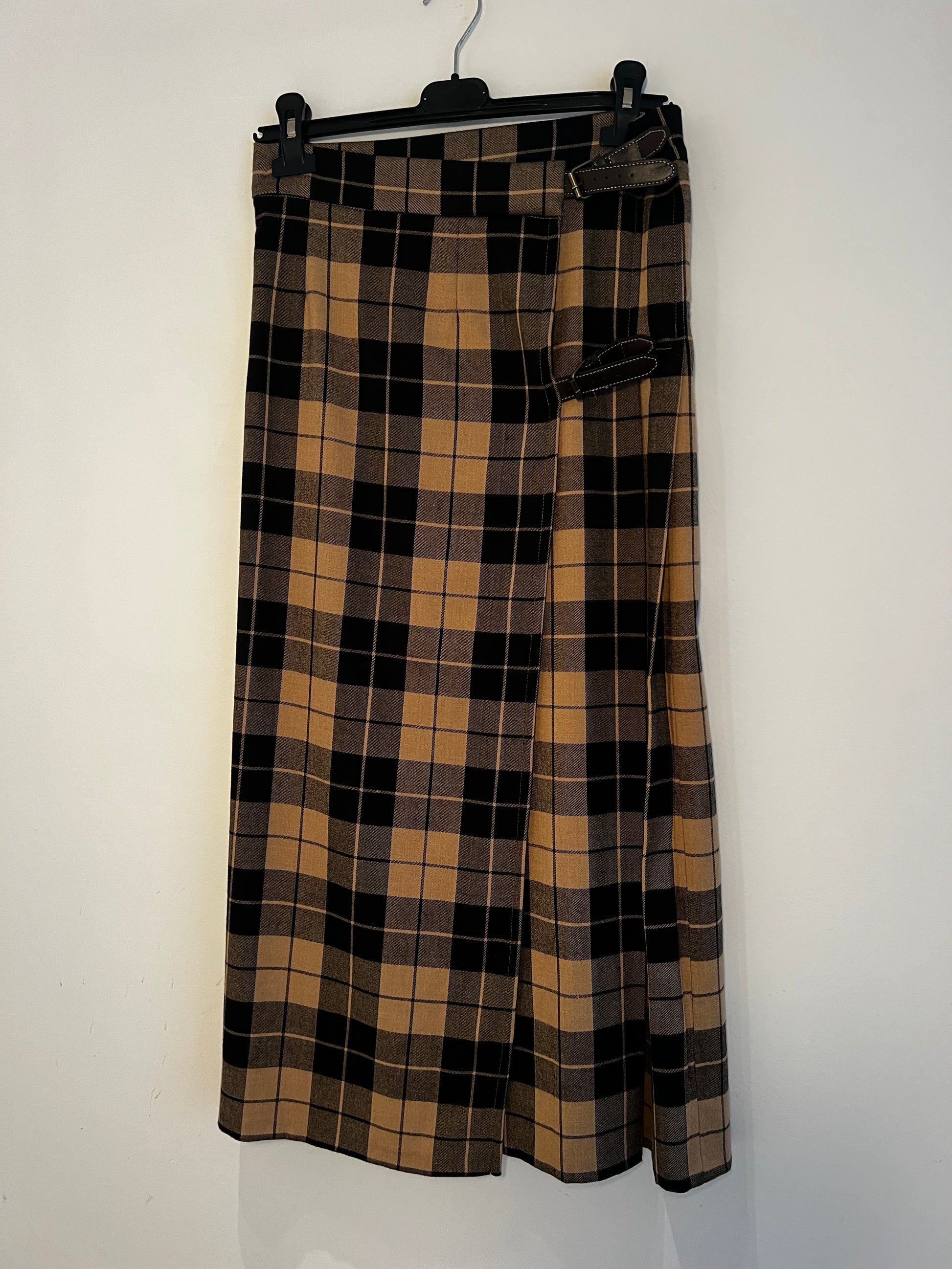 Maxi Gonna modello kilt lungo tre balze in morbido tessuto scozzese.