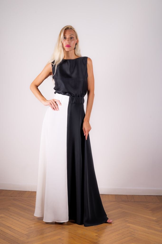 Gonna lunga modello Malu’ a mezza ruota in tessuto morbido con tasche sui fianchi. .