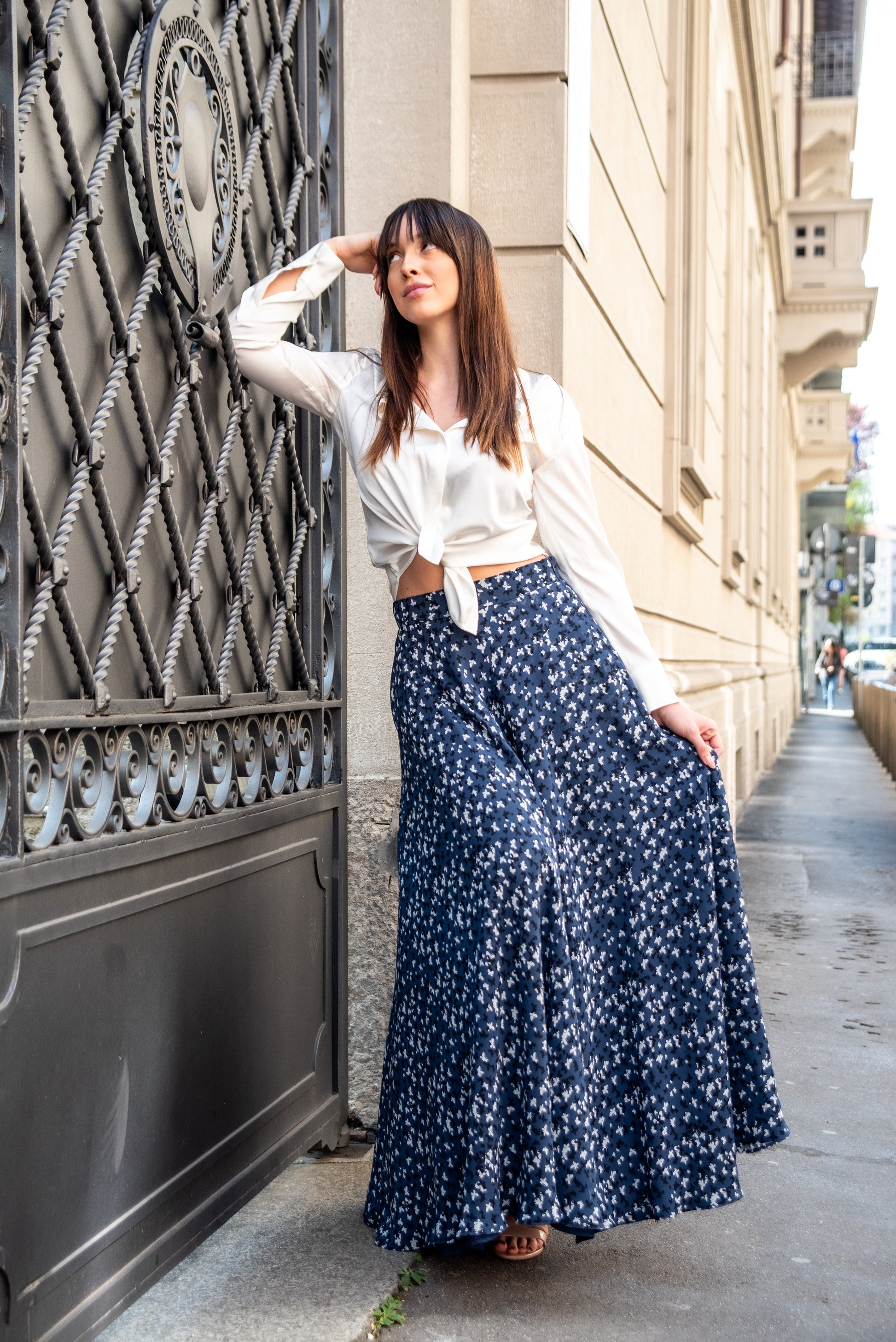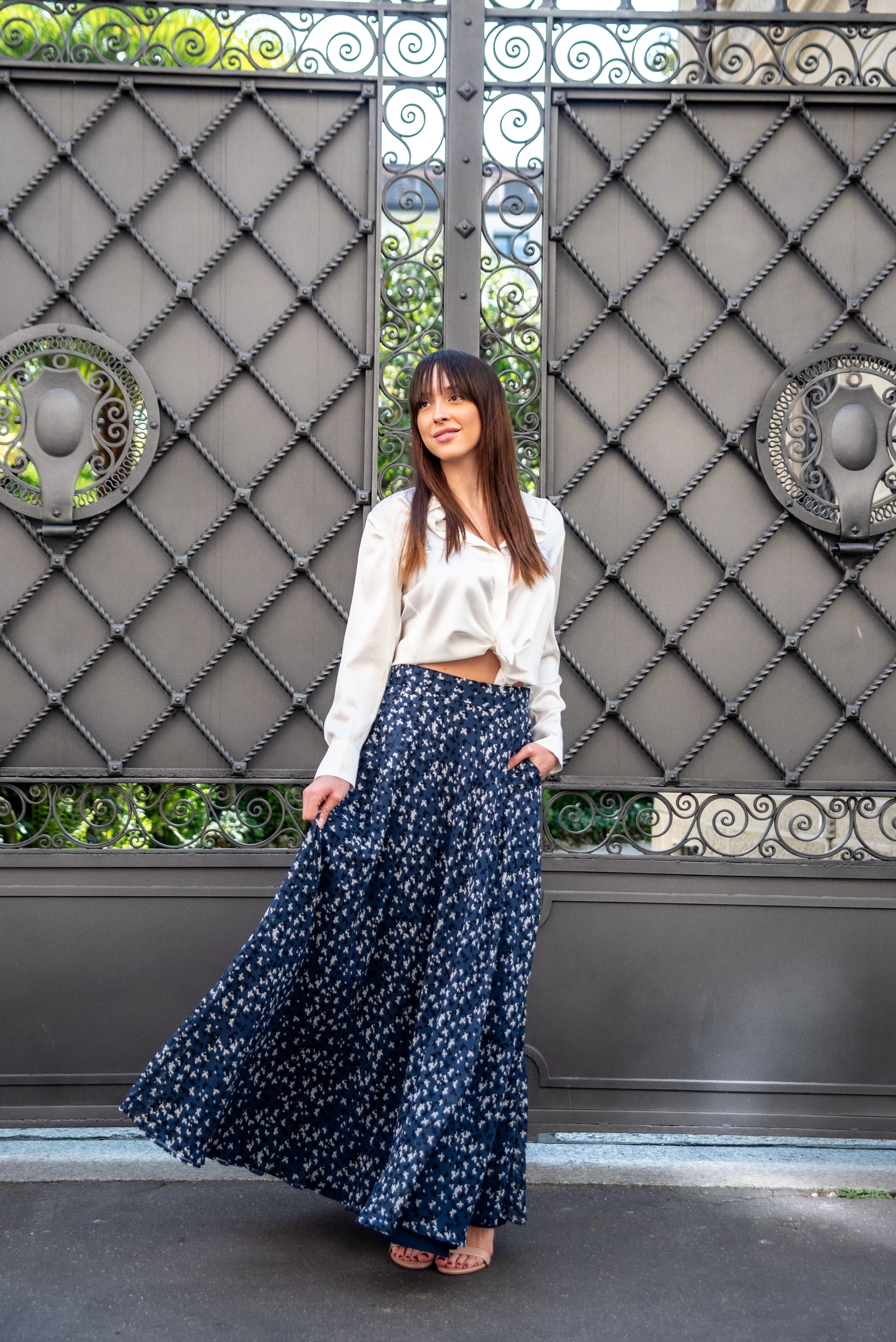 Gonna lunga modello Malu’ a mezza ruota in tessuto di chiffon morbido con tasche sui fianchi e una morbida fodera che rende la gonna utilizzabile nelle 4 stagioni perfetta in inverno con un golf di cachemire è stupenda in estate con un top o una camicia di cotone. La gonna Malu’ è un capo intramontabile e molto versatile.