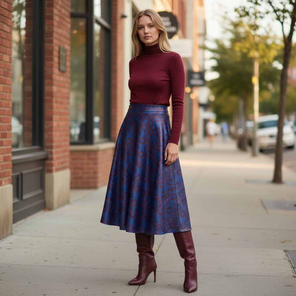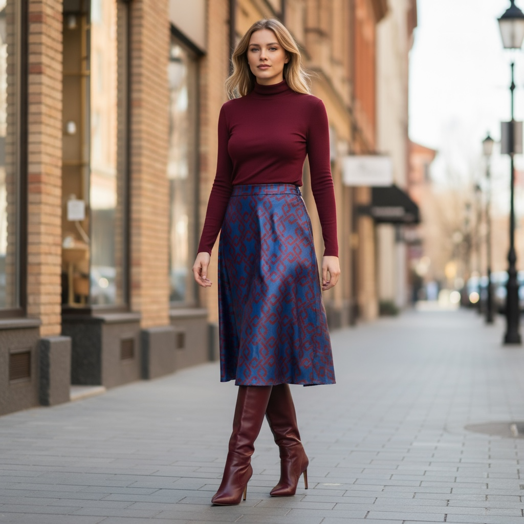 Il tessuto satin della gonna Malu’ con il motivo greche e’ un continuativo, viene appositamente stampato di volta in volta ed e’ quindi disponibile in molte varianti di colore e anche su misura e in taglie plus per vedere tutte le varianti o avere una consulenza stilistica wup +393470657811