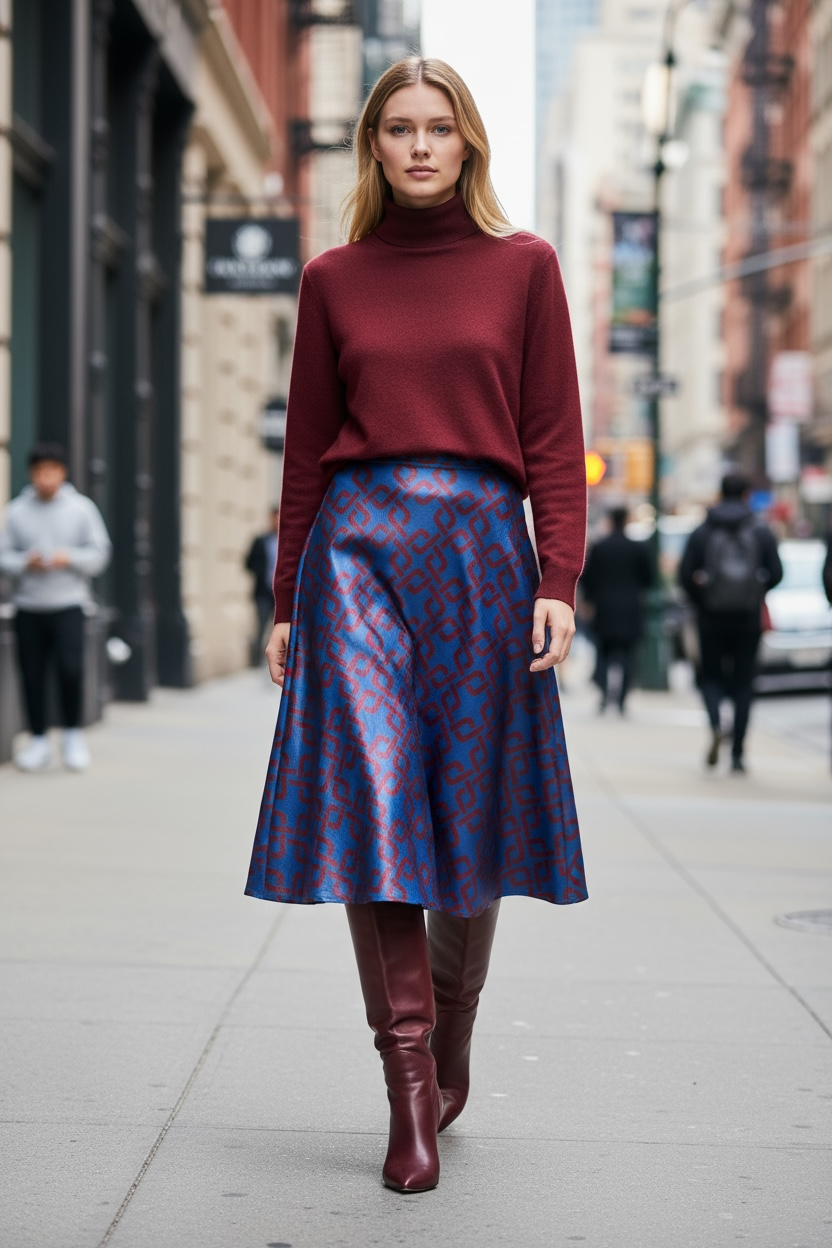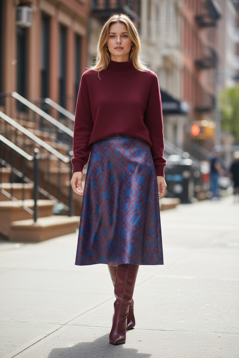 Gonna lunga modello Malu’ a mezza ruota in tessuto satin lucidissimo e molto morbido e fluente