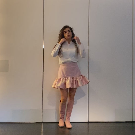 Gonna Kiki in Lana con Balza in Broccato Rosa Cipria