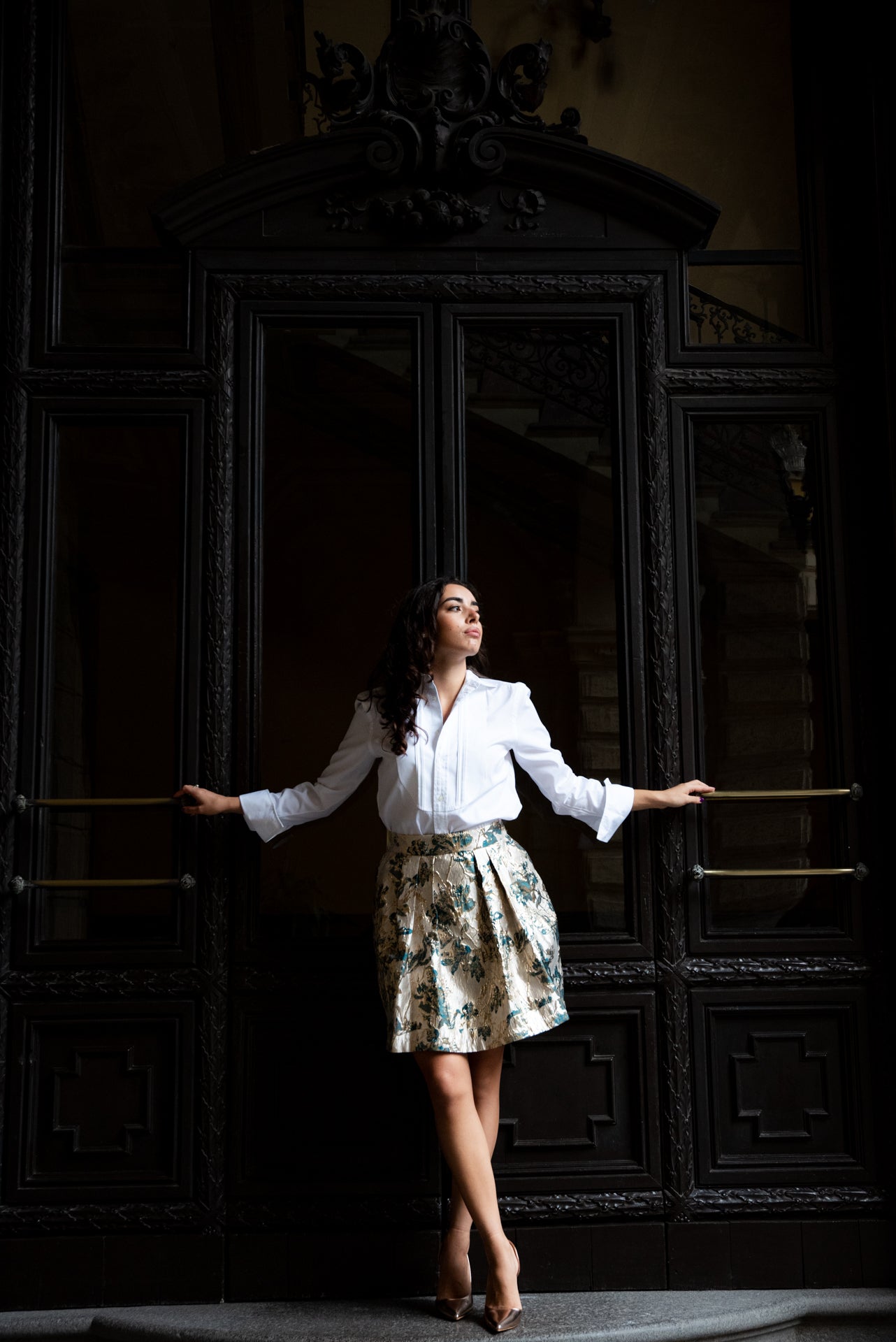 Questo tessuto in broccato scintillante, attraversato da finissimi fili brillanti, è meravigliosamente brillante Proprio la scelta giusta, se desideri cucire una meravigliosa gonna da sera super trendy per il prossimo party.