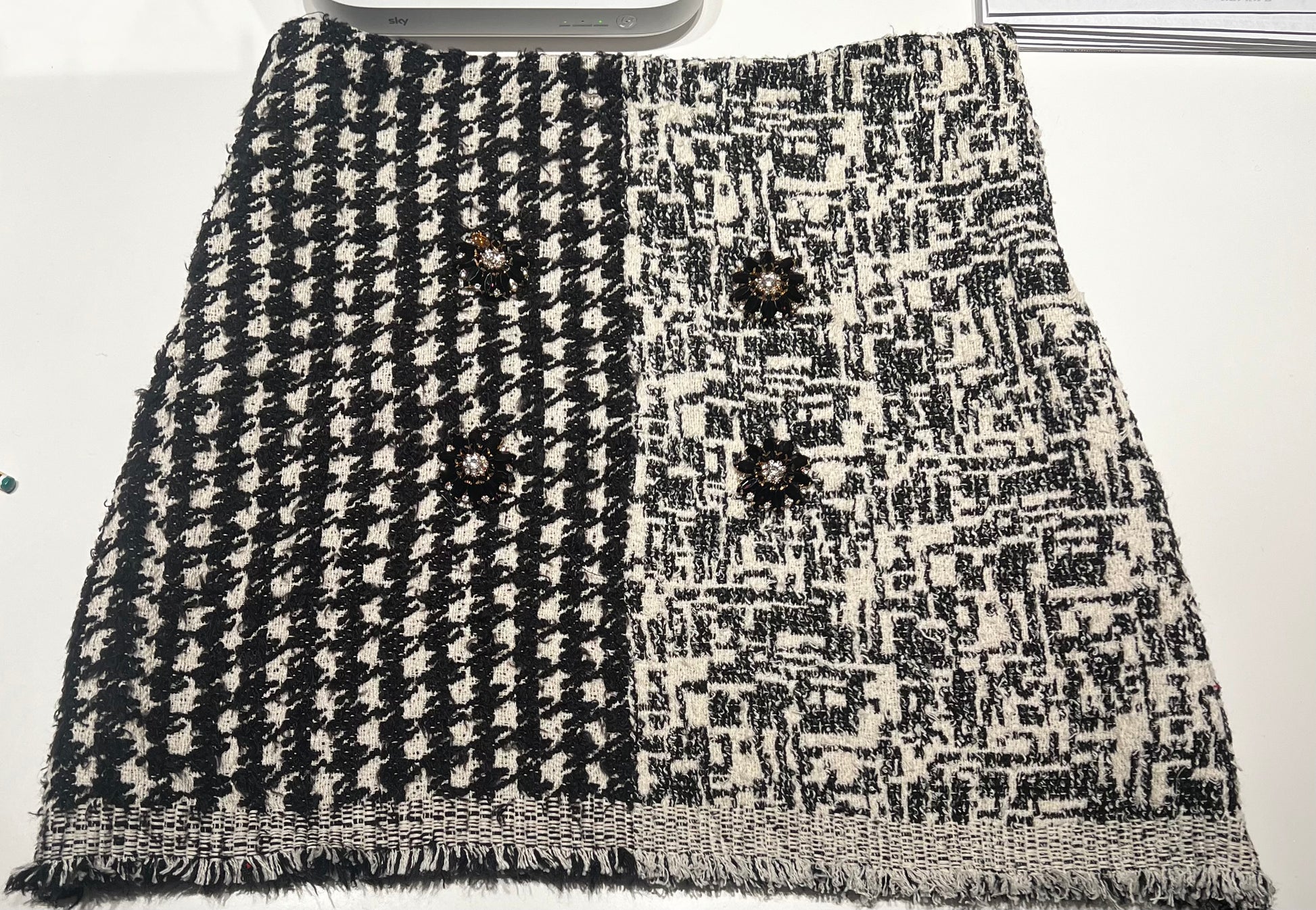 - lana bianca e nera di due motivi diversi