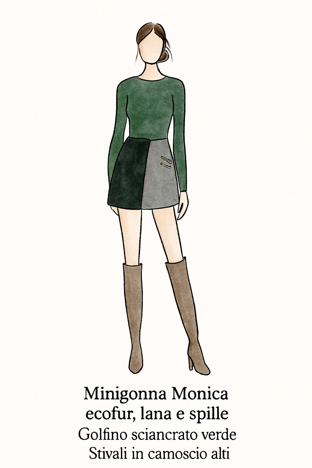 Minigonna Monica in ecopelliccia e tessi di lana scozzese