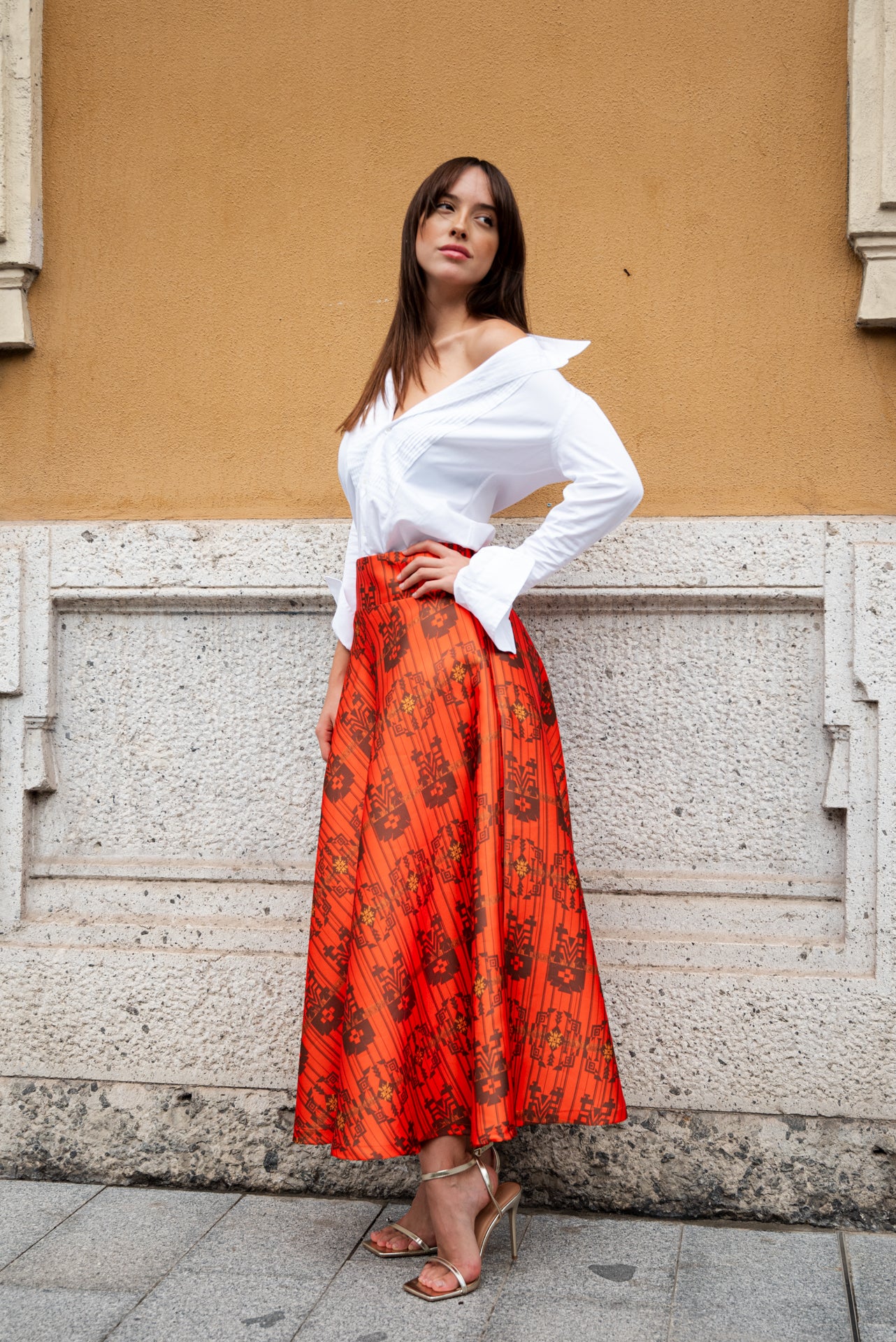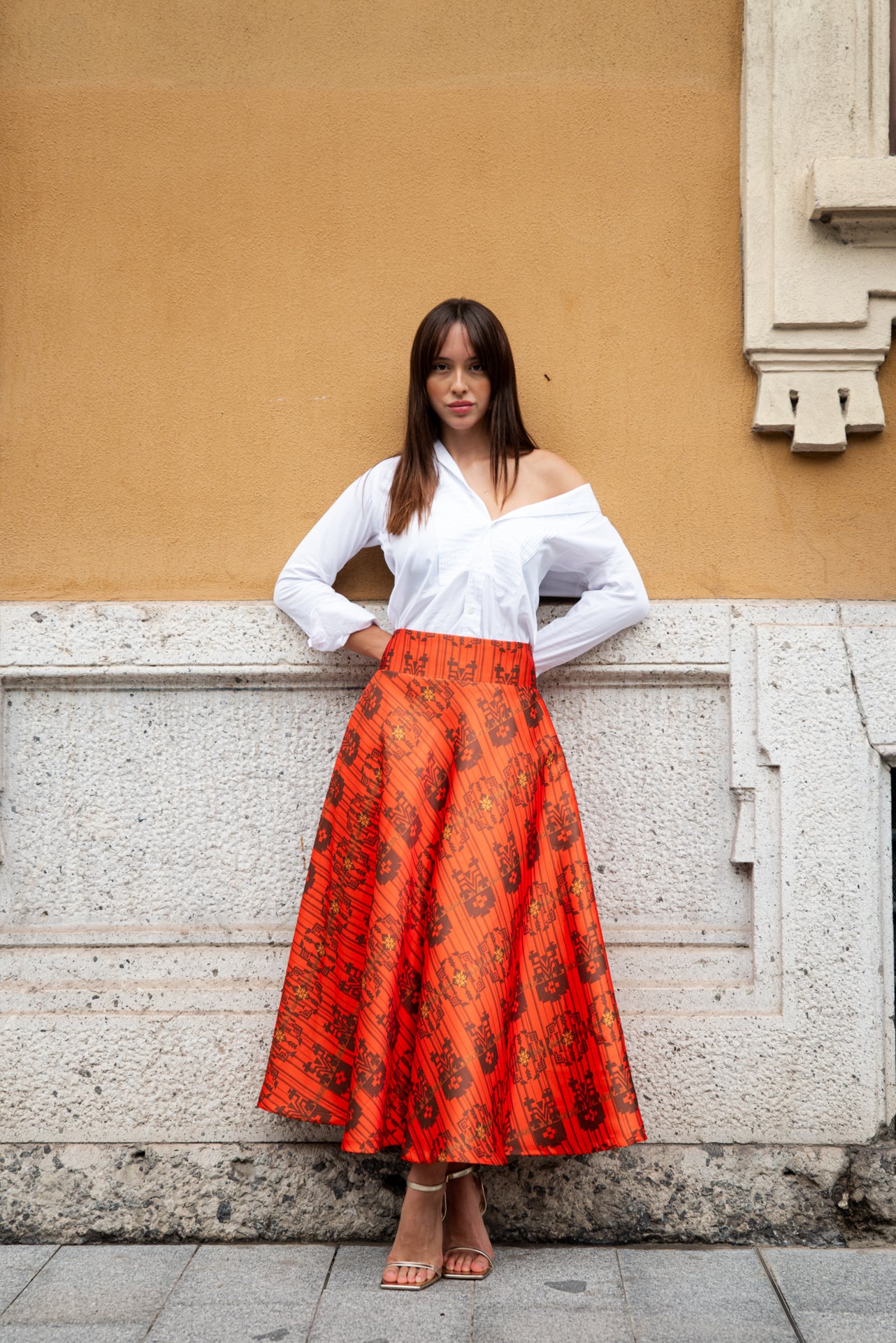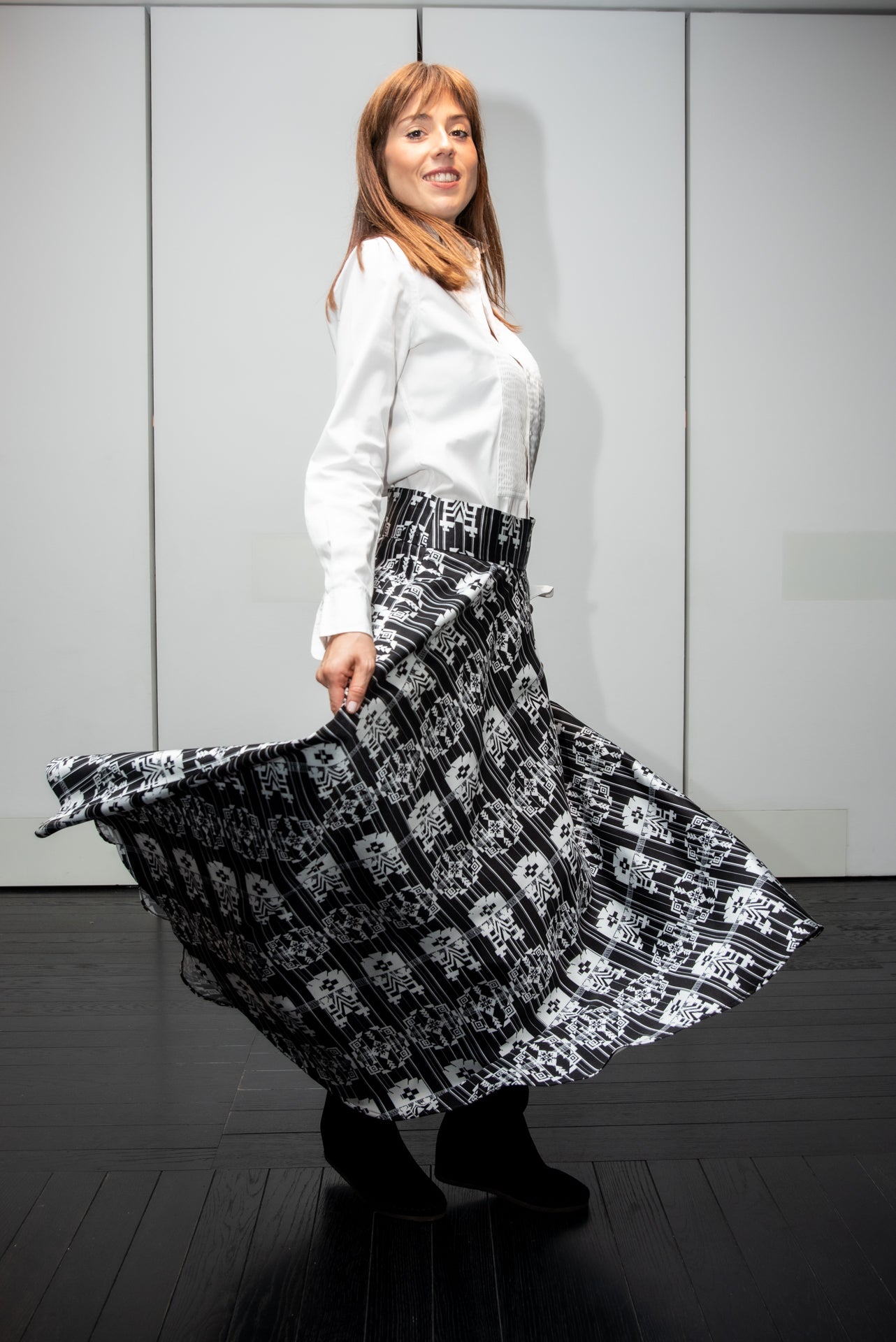 La gonna modello Valentina Sami Sabbadini è un continuativo della collezione ed è disponibile anche su misura in diverse varietà di tessuto