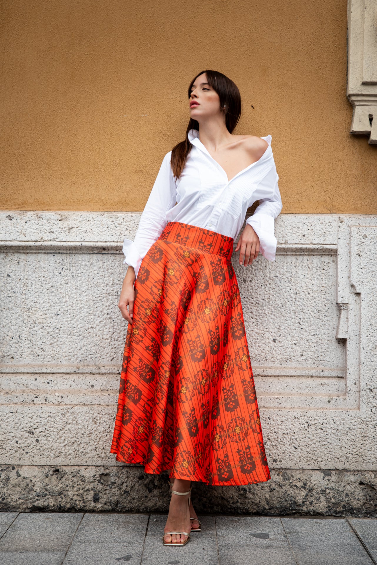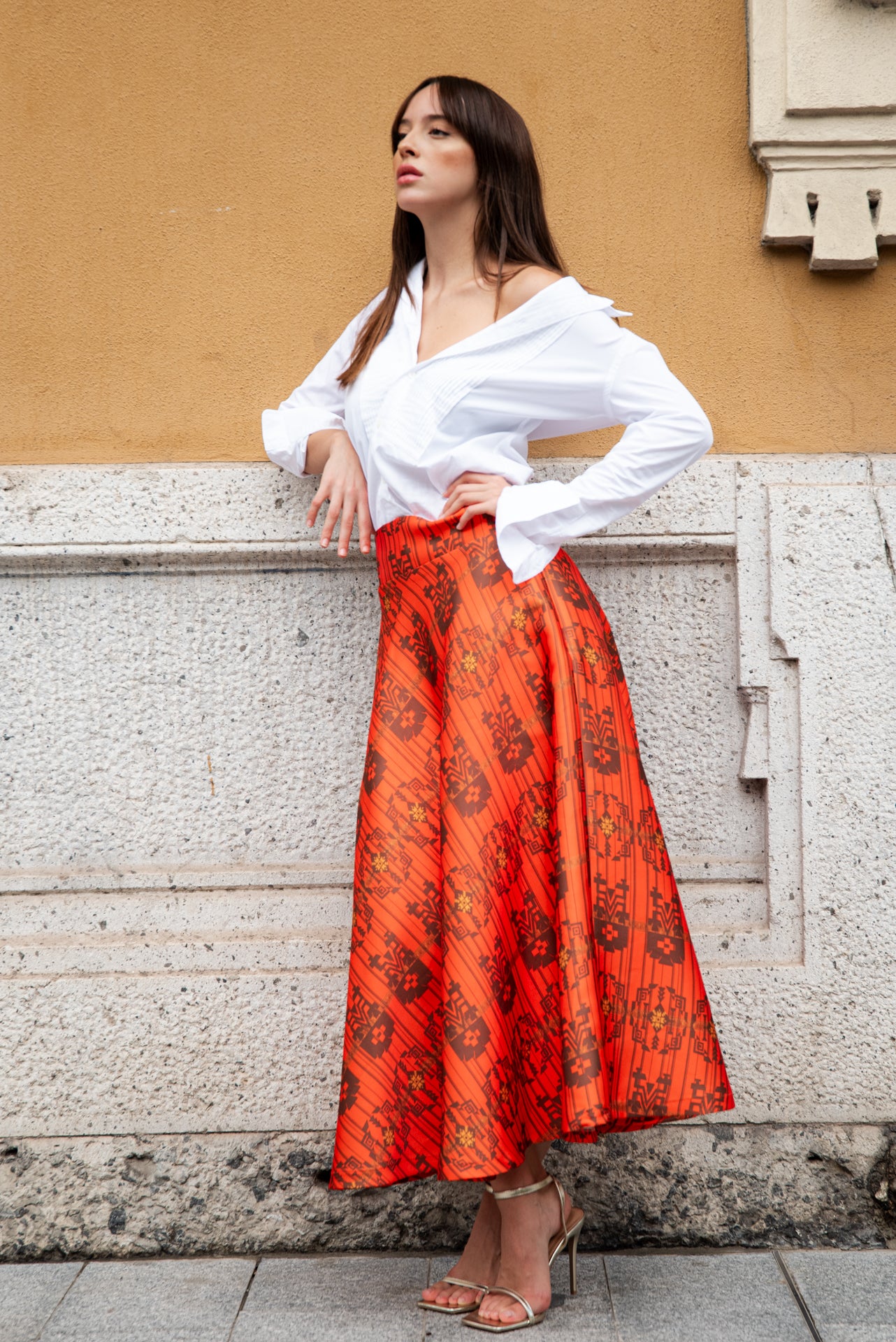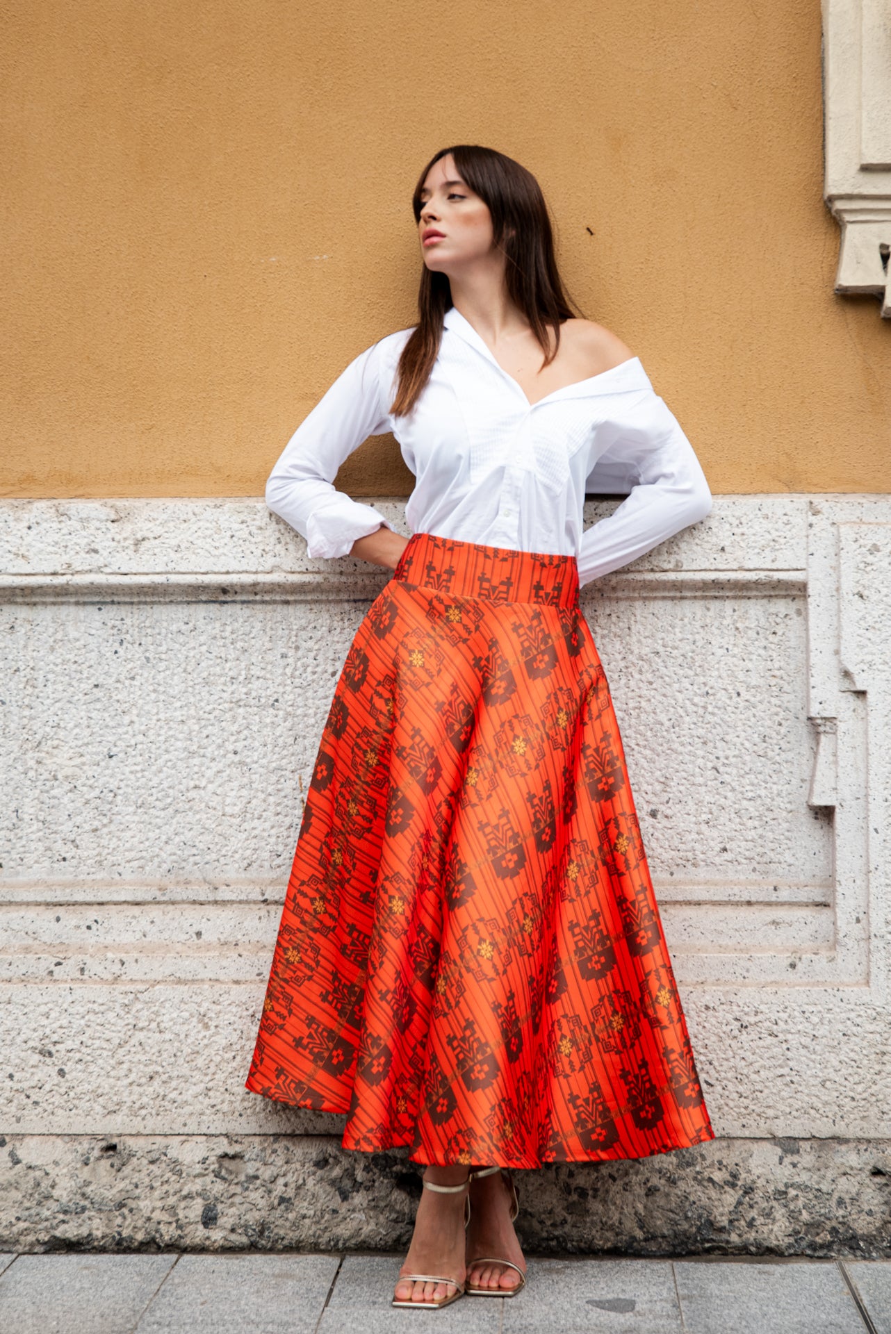 La gonna modello Valentina Sami Sabbadini è un continuativo della collezione ed è disponibile anche su misura in diverse varietà di tessuto