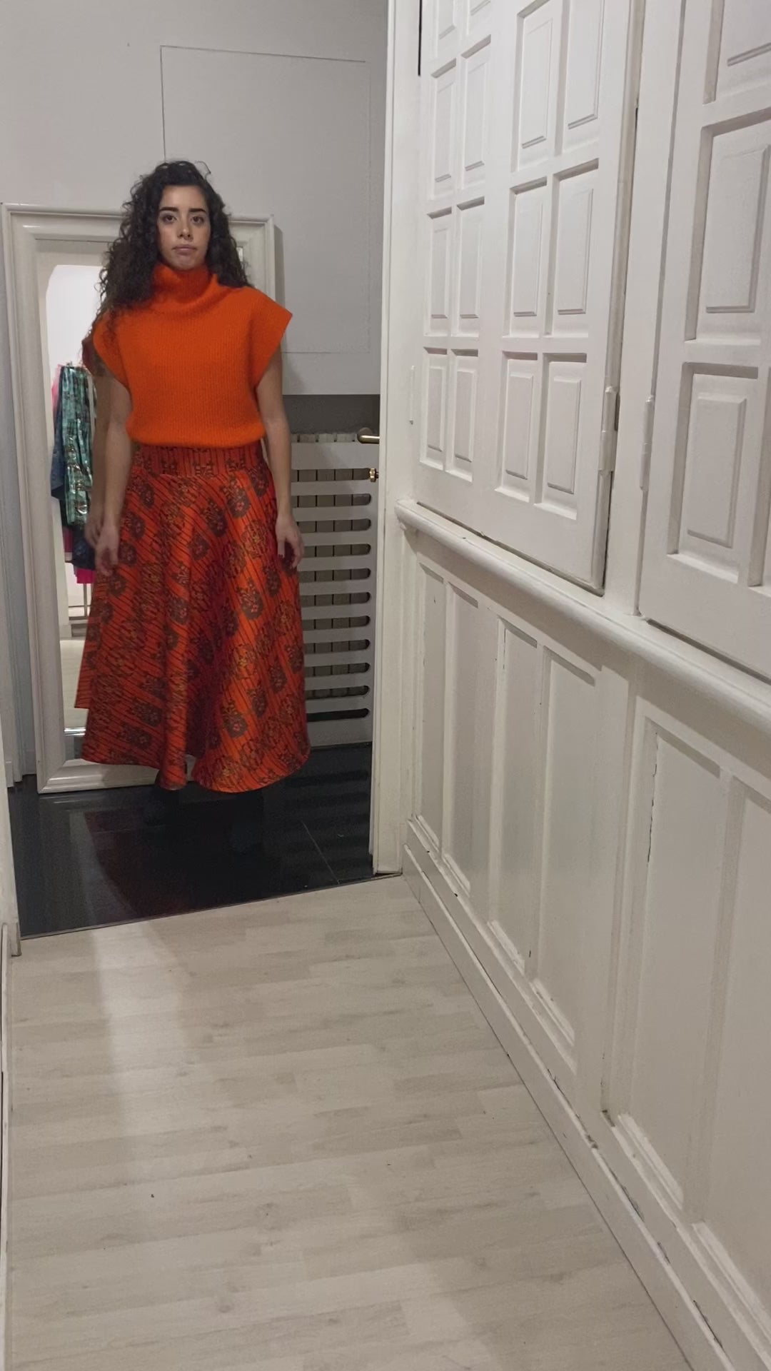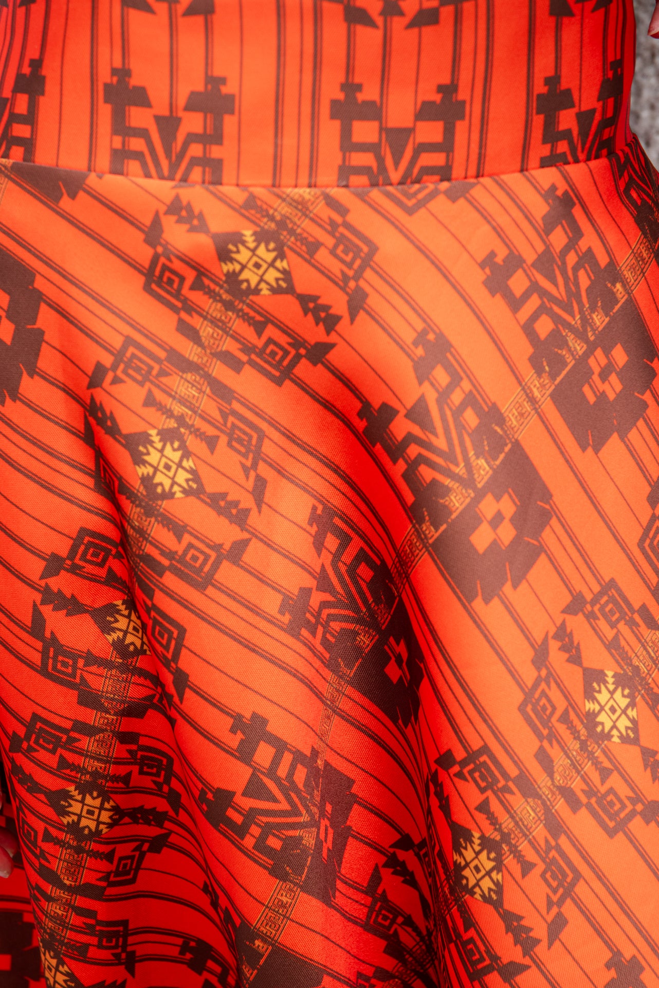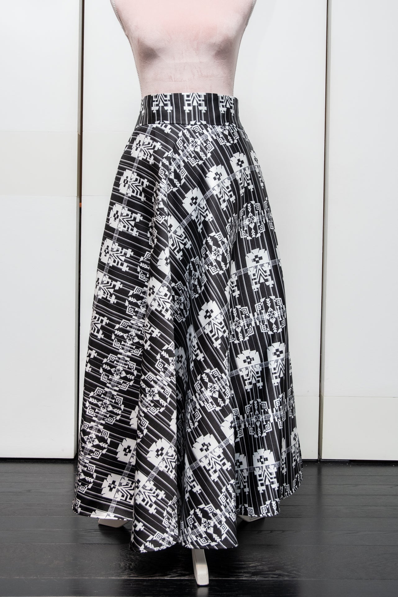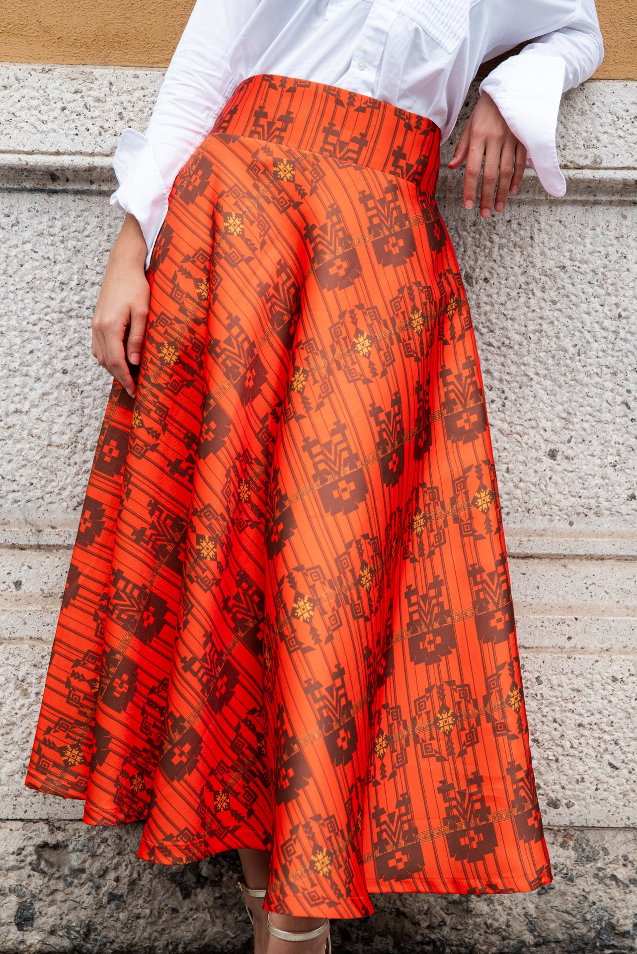 Gonna Modello Valentina a ruota in tessuto panno con disegno ITKAT con tasche laterali .