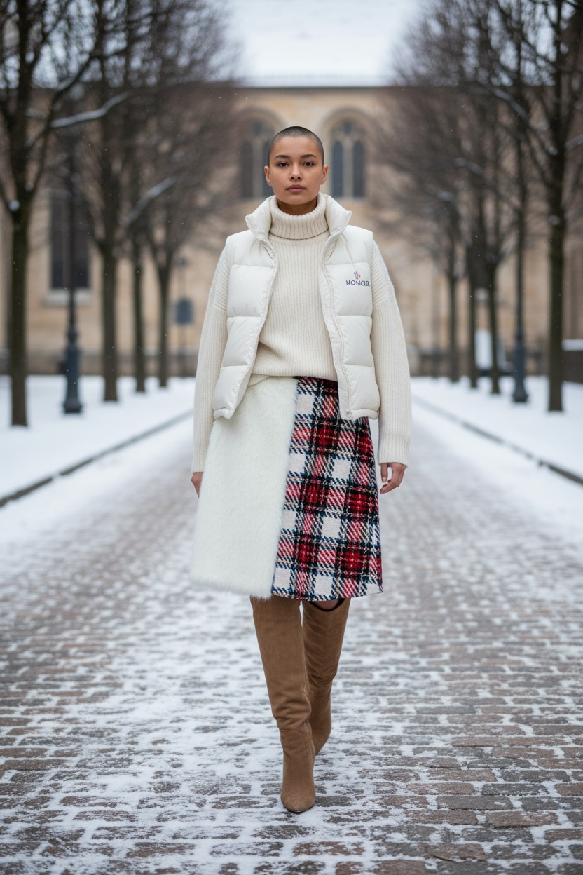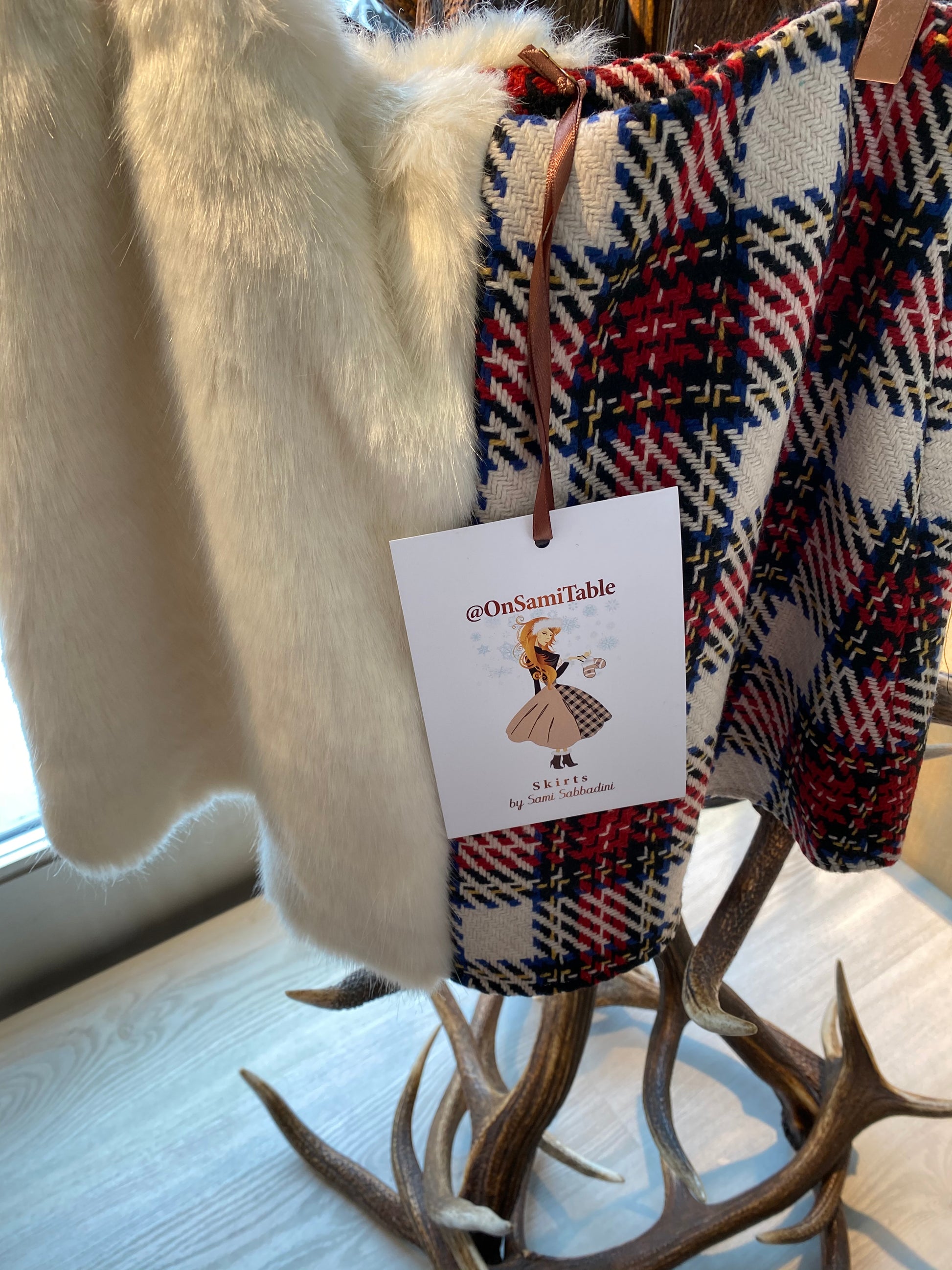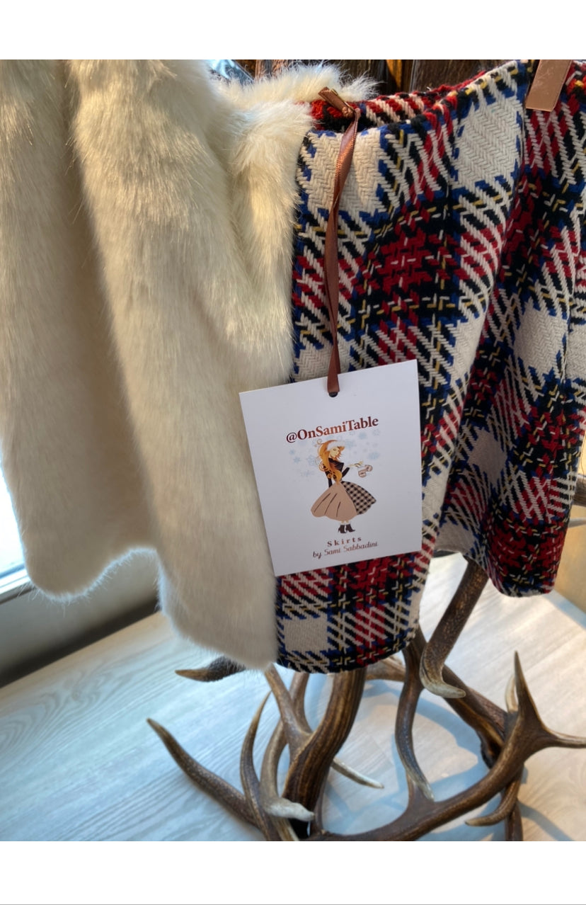 Gonna Monica in ecopelliccia bianca e lana scozzese