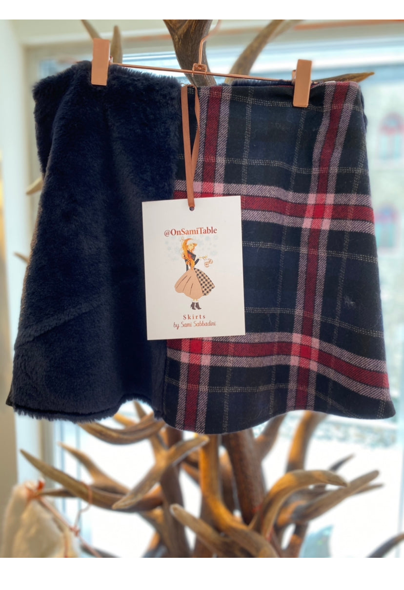 Minigonna Monica in ecopelliccia e tessi di lana scozzese